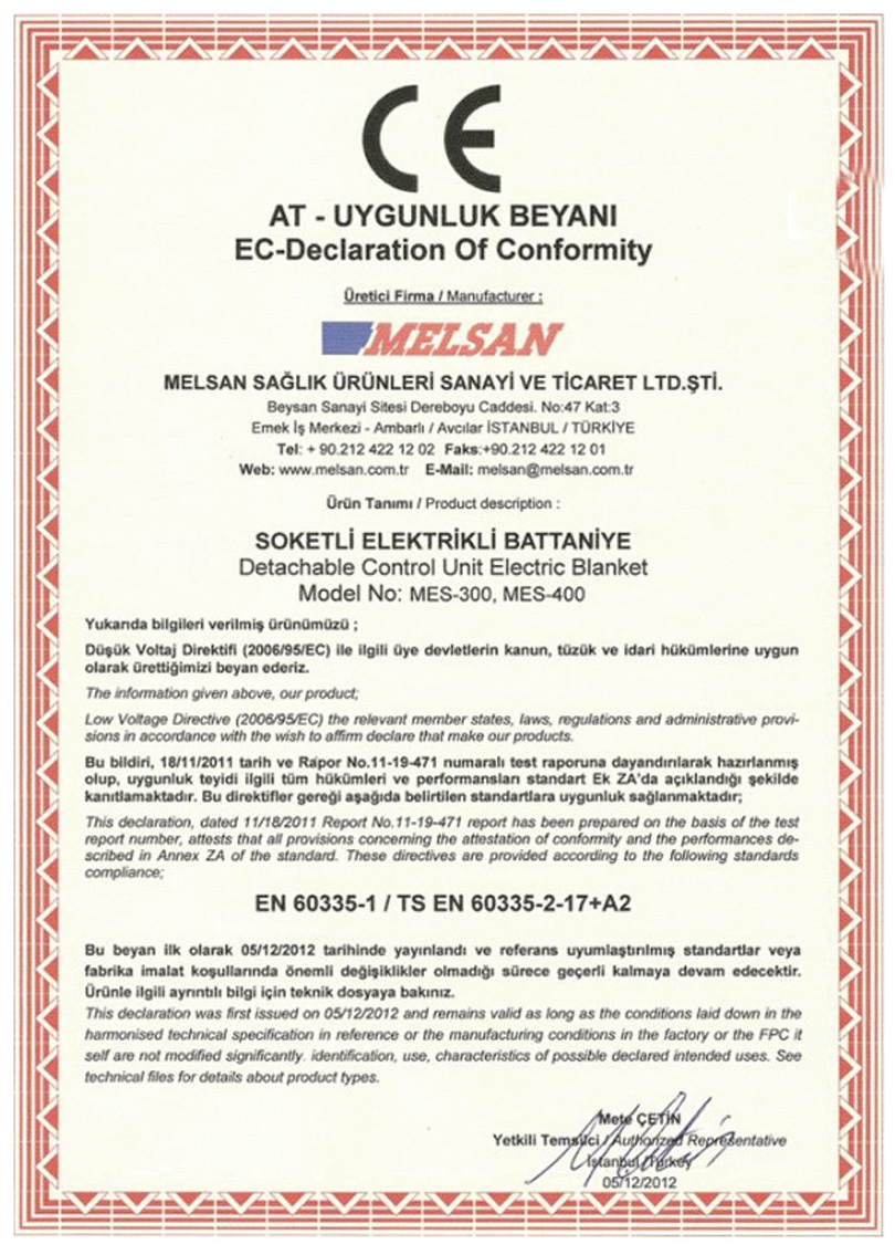 Comfort Elektrikli Battaniyeler (MP Serisi)